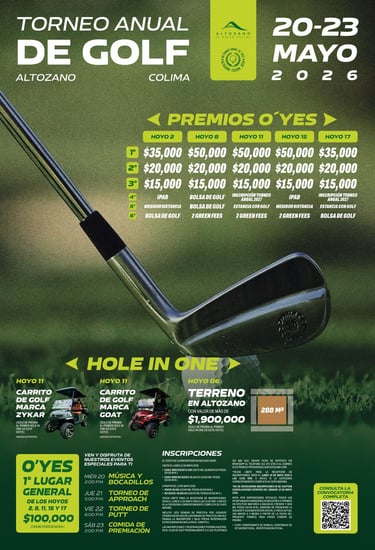 El campo de golf es la oficina con la mejor vista del mundo. Te invitamos a estar pendiente de nuestros próximos eventos exclusivos, diseñados para conectar a los líderes empresariales y tomadores de decisiones más importantes de la zona. Mantente informado sobre nuestras fechas de torneo y eventos de convivencia; el escenario perfecto para fortalecer alianzas estratégicas mientras disfrutas de la pasión por el golf en Manzanillo y Colima