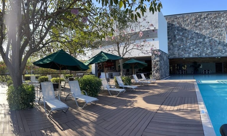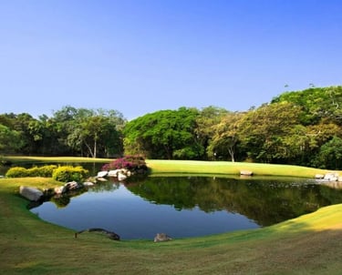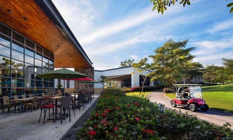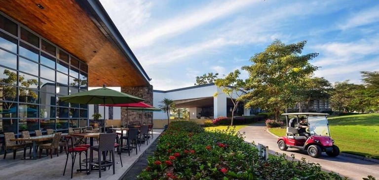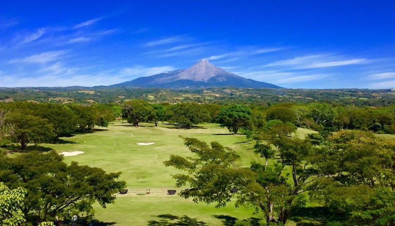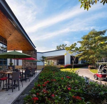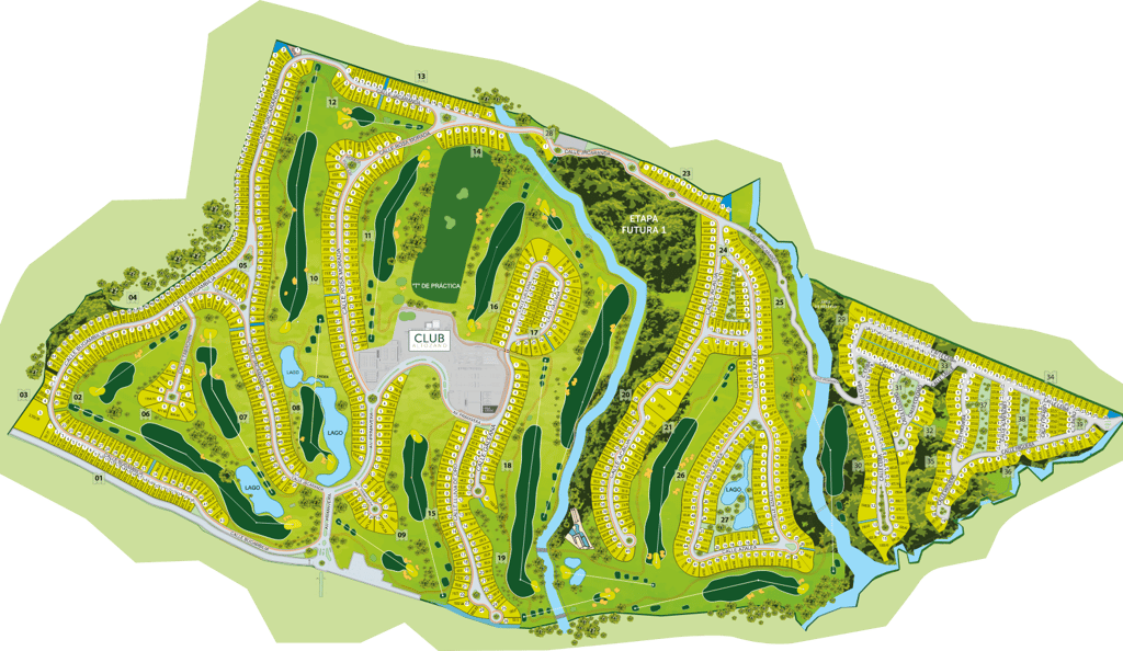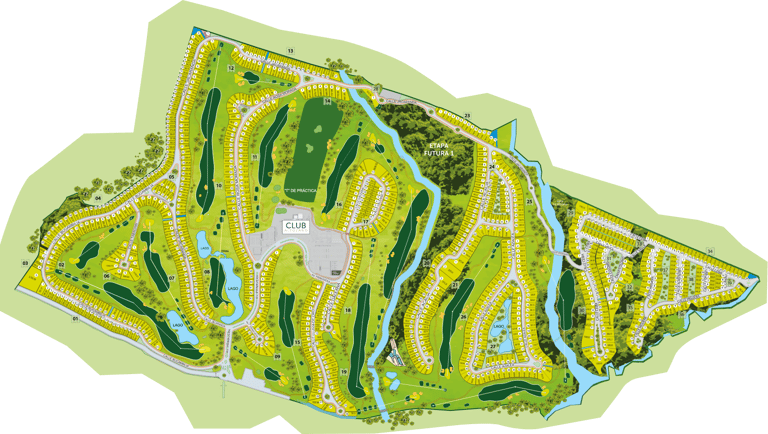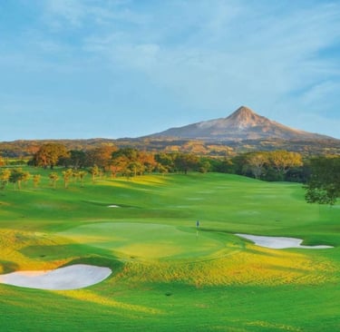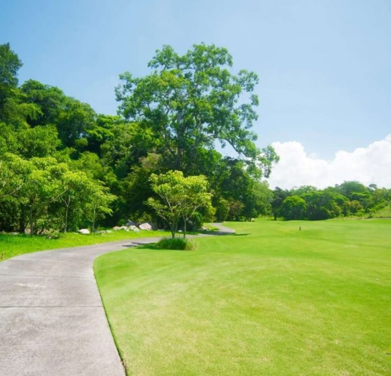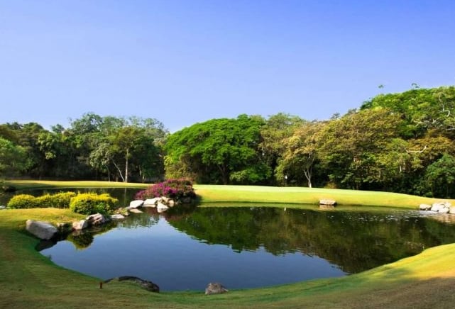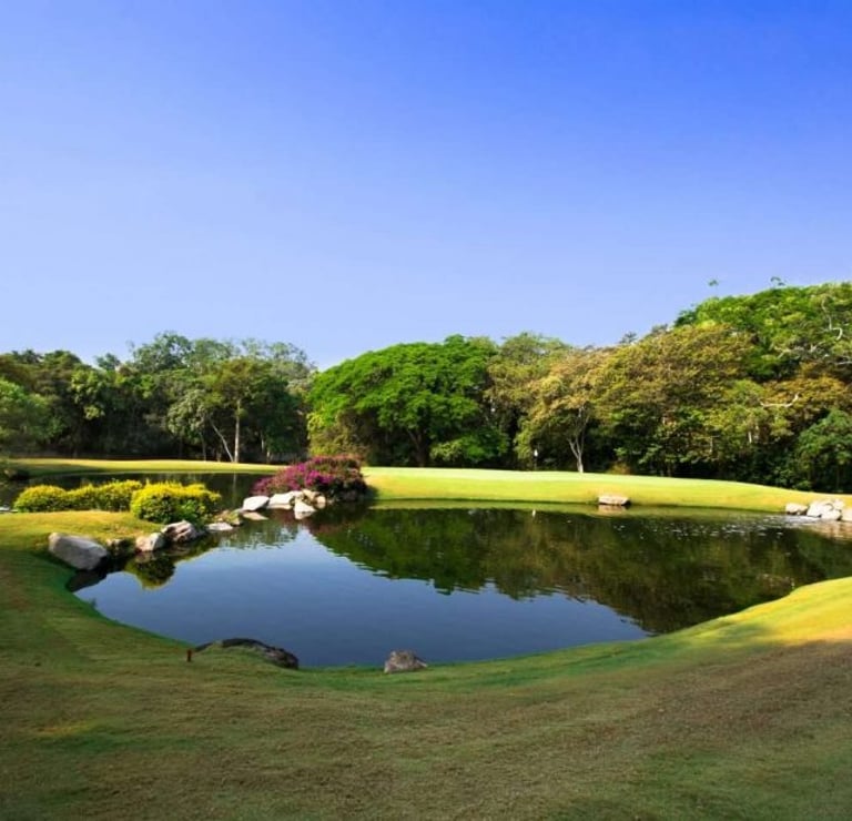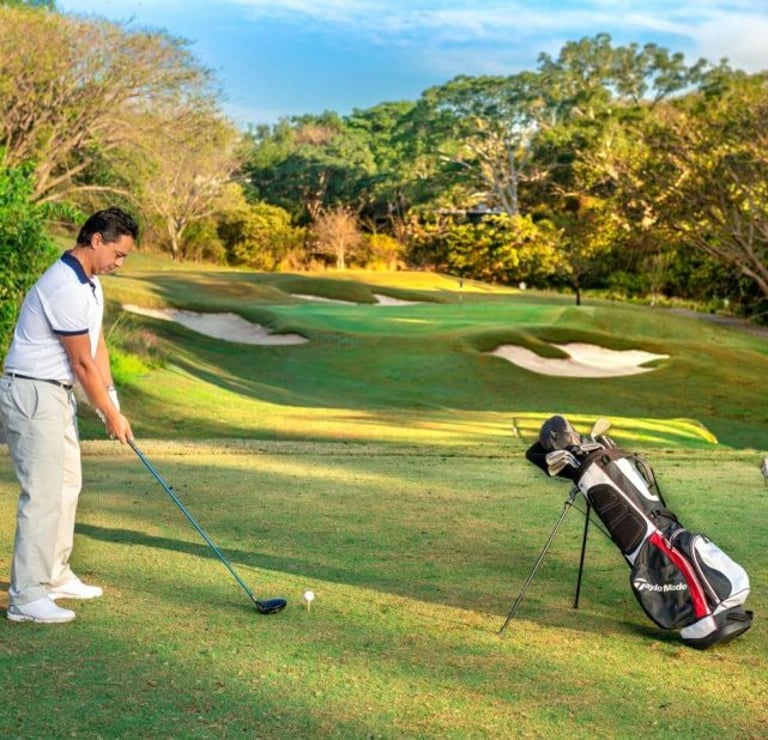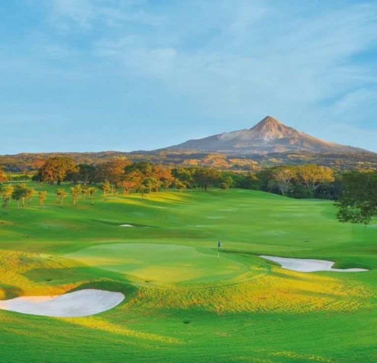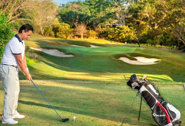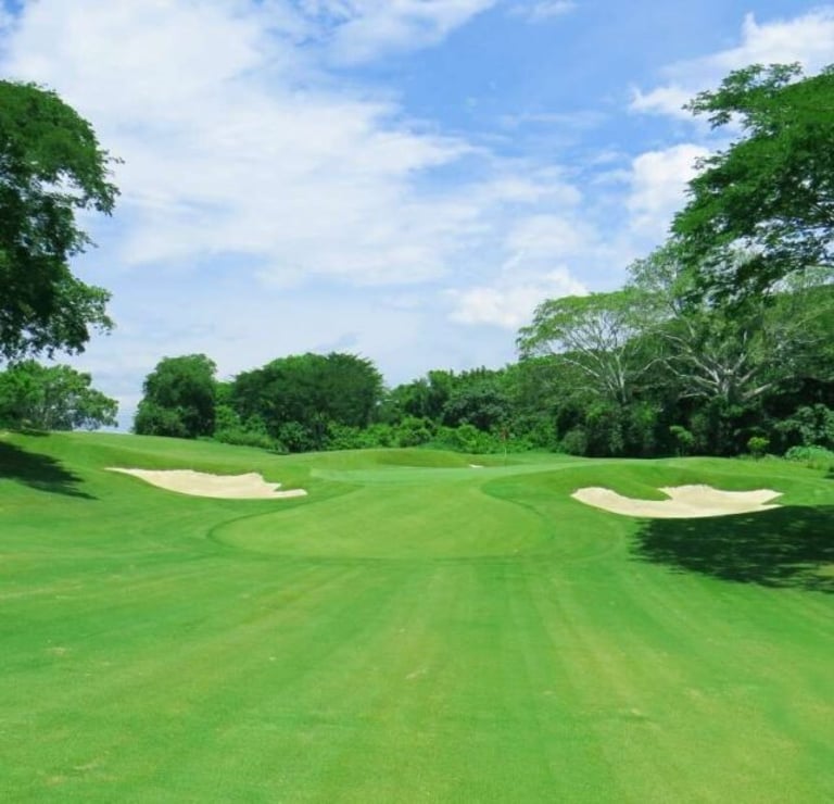 El campo de golf está desarrollado con los más altos estándares de calidad en 44,000 m². Un diseño de Carter Morrish y Rafael Alarcón de 18 hoyos par 70 con 6,682 yardas, donde se logró un balance perfecto entre la naturaleza, diseño y el buen golf. Sus grandes fairways de bermuda, tee de práctica de más de 300 yardas, 3 lagos y sus árboles centenarios harán de tu ronda de golf un día inolvidable. Cuenta con 6 hermosos par 3 y se caracteriza por su arena blanca en los bunkers. Los hoyos más retadores del campo de golf son el 13, 14 y 15 nombrado por los jugadores el triángulo de las bermudas, donde se puede admirar la belleza de dos de sus lagos