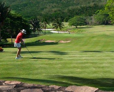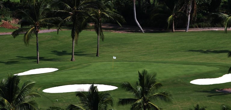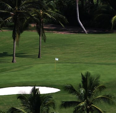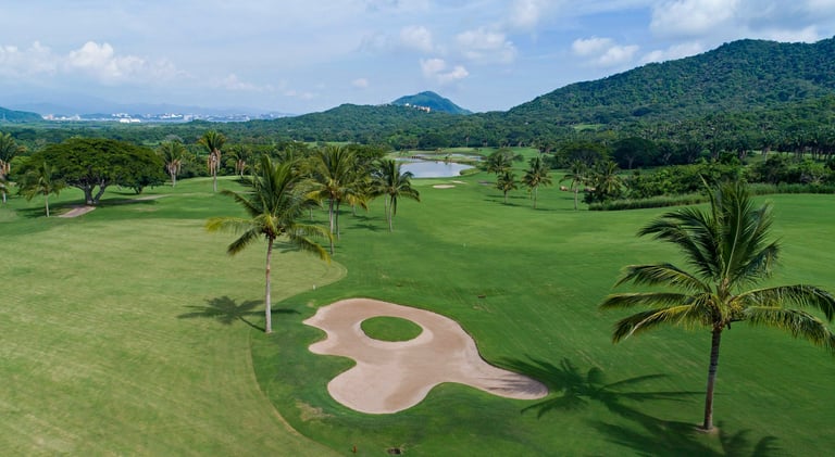 Este campo de golf de primera categoría en Manzanillo se mantiene meticulosamente y está listo para jugar en cualquier momento, sin necesidad de reservar hora de salida para los huéspedes.